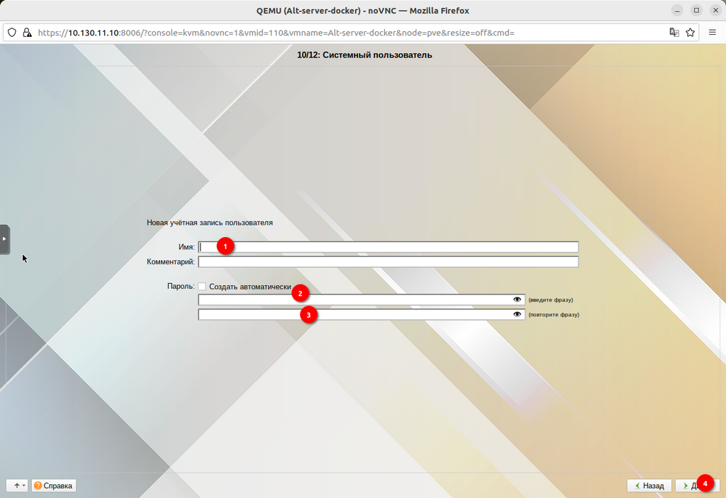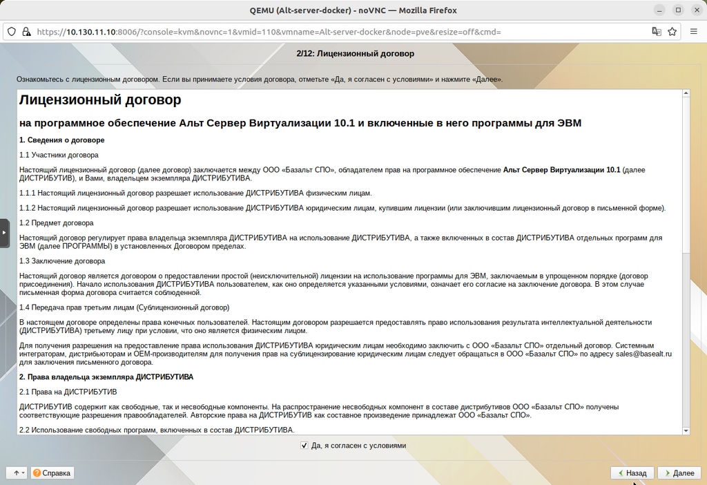 Установка производится на Proxmox сервер, 4 виртуальных процессора, 8192 Mb ОЗУ, 32 Gb жесткий диск.
